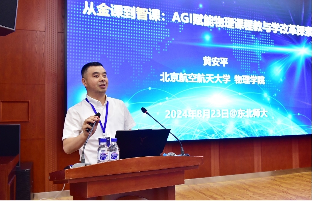 黄安平教授的报告以“AGI时代大学物理课程教与学改革的思考”为题,展望了通用人工智能技术对大学物理课程传统教学模式和学习模式的影响,并深入分析了AGI赋能得物理课程建设发展方向。