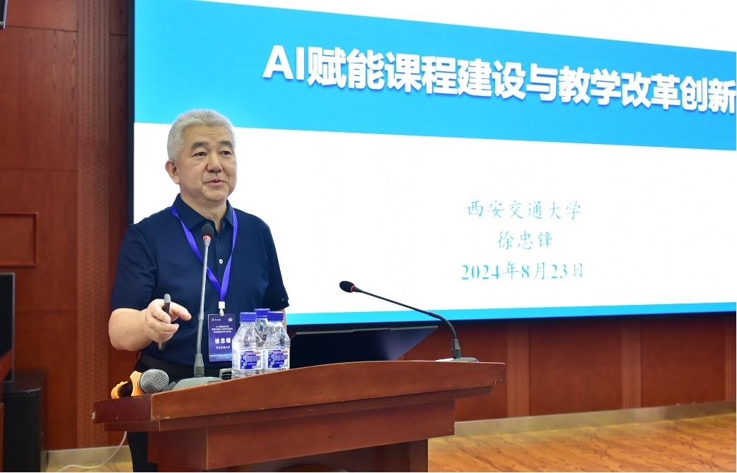 徐忠锋教授的报告以“AI赋能课程建设与教学改革创新”为题,围绕高等教育数字化转型,系统讲解了课程群建设、课程资源库建设、AI技术支持等方面的丰富内涵和实践路径。