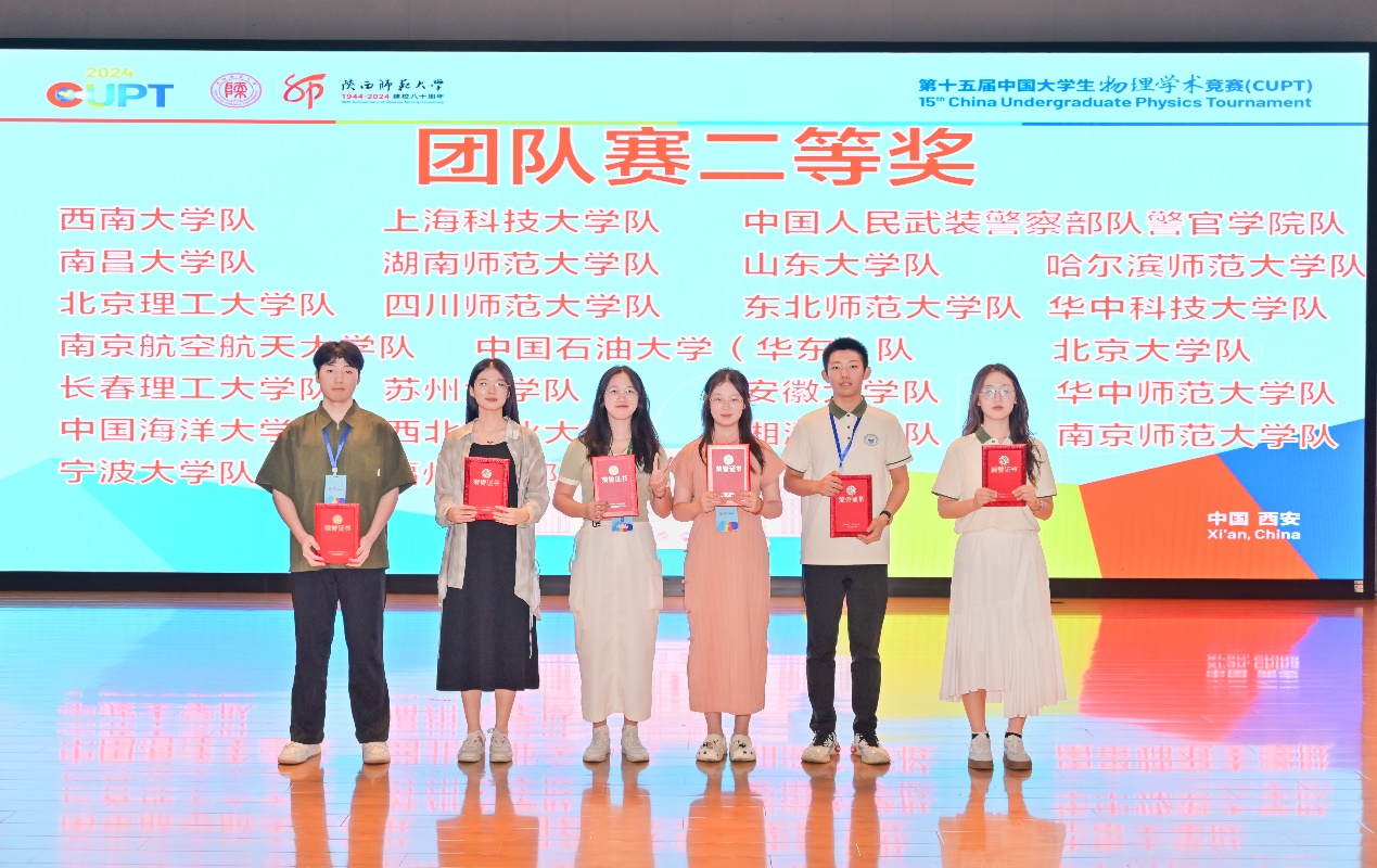 2024年8月22日,第十五届中国大学生物理学术竞赛(CUPT)在陕西师范大学正式落下帷幕。经过激烈角逐,由我校必一运动(官方网站)B·Sport-权威运动资讯网站2022级本科生刘帆、张钰双、王帅轲、张艳超、陈宇童(指导教师:孙春芳、王刚成)组成的代表队荣获团体赛二等奖的优异成绩。同时获得2025年CUPT国赛团体赛直通资格。