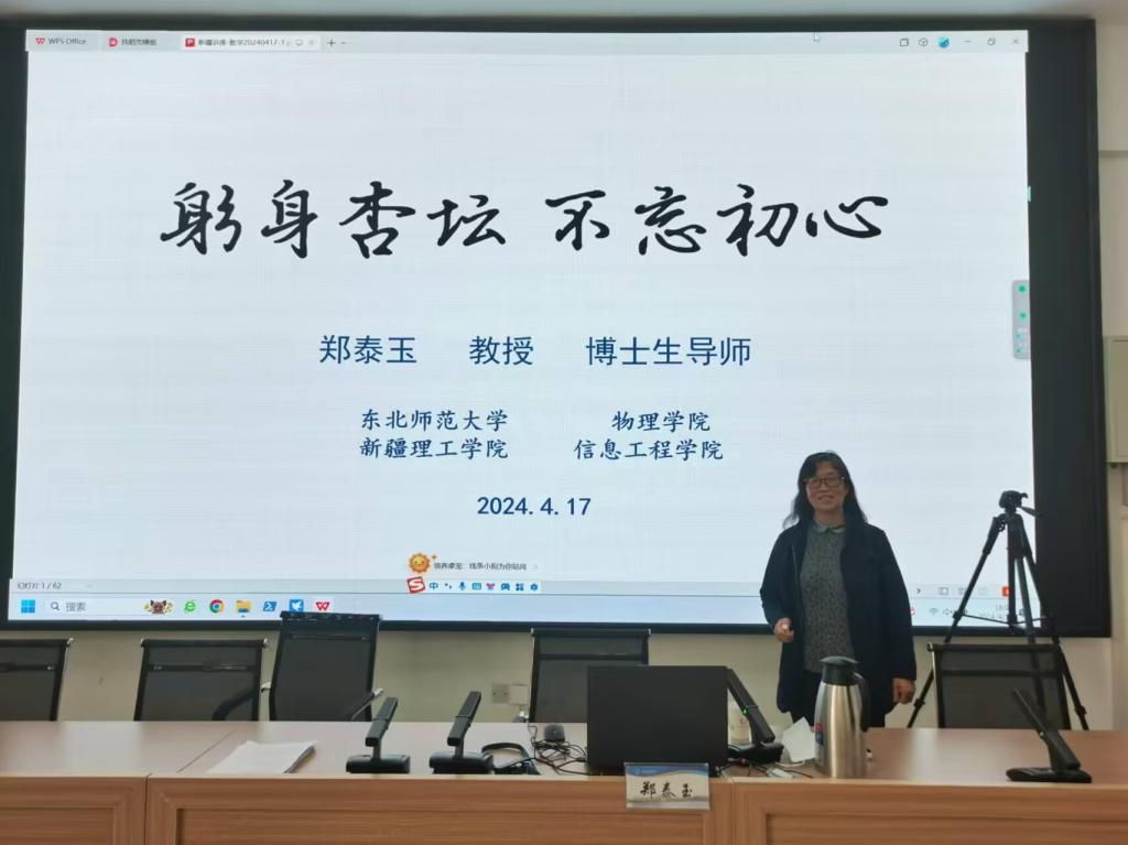 在新疆理工学院的工作是丰富而充实的。教学方面,主要承担了通信工程专业专业核心课《电磁场与电磁波》和电子实习课程,收获了学生们的良好反馈;通过听课、做教学大赛评委和指导参赛老师等途径了解了青年教师的教学情况,为他们传授教学经验,帮助他们改进不足,努力提高他们的教学水平和参赛能力;重点指导了两位年轻教师如何上好《电磁场与电磁波》课程,使他们的知识水平和教学能力得到了显著提高;为了增强青年教师的责任感和使命感,弘扬教育家精神,受邀做了题为《躬身杏坛不忘初心》的讲座,希望他们以教育家为榜样,将教育家精神转化为执教的理想与追求,不断提高自己的教学水平和专业素养,成长为卓越的人民教师。科研方面,分享科研经验,指导青年教师如何选择研究课题、进行研究和撰写论文,以期促进年轻教师的科研能力的提升;引导青年教师科教融合,将科研成果与教学实践相结合,帮助他们更好地应用科研成果于教学中。