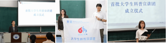 会上,党委书记臧丹为首批大学生科普宣讲团授团旗。党委副书记栾宇在致辞中回顾了学院科普工作的发展历程,强调加强赛思科普公益学校建设的重要意义,明确科普宣讲团的特色定位和工作方向,介绍了首批宣讲团的18名优秀本科生、硕士生、博士生成员,并提出宣讲团成员要厚植情怀、甘于奉献、历练本领的殷切期望。宣讲团成员代表张怡然同学分享了她的感悟与决心,表示将不负嘱托,用实际行动践行科普使命。