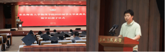 教师代表赵信刚的发言,则饱含着老师们对毕业生的关切与守望,他希望同学们在未来的发展之路上,能够继续“关注前沿科技动态、保持批判性思维、培养跨学科视野”,并用电影《哪吒2》中“我命由我不由天”的经典台词,鼓励毕业生要保持本真、坚守初心。