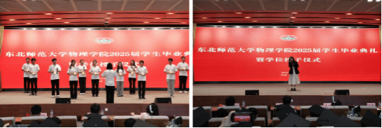 典礼开始前,“物苑青音”合唱团为毕业生们送上一首《和光同尘》,祝愿毕业生们步入社会、跃入人海之后,依然能够保持积极向上、坚韧不拔的人生态度。毕业生代表2021级本科生翟佳蓉带来一首《凤凰花开的路口》,歌声婉转悠扬,表达了毕业生们对离别的不舍与对重逢的期待。