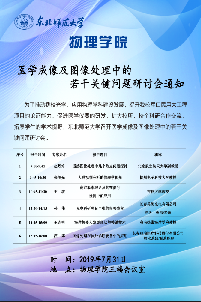 医学成像及图像处理中的若干关键问题研讨会通知
